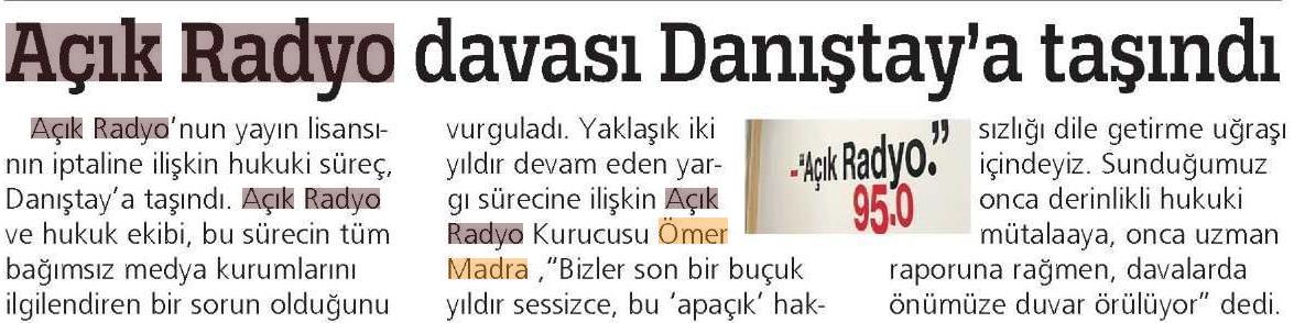 Sözcü: "Açık Radyo davası Danıştay'a taşındı"